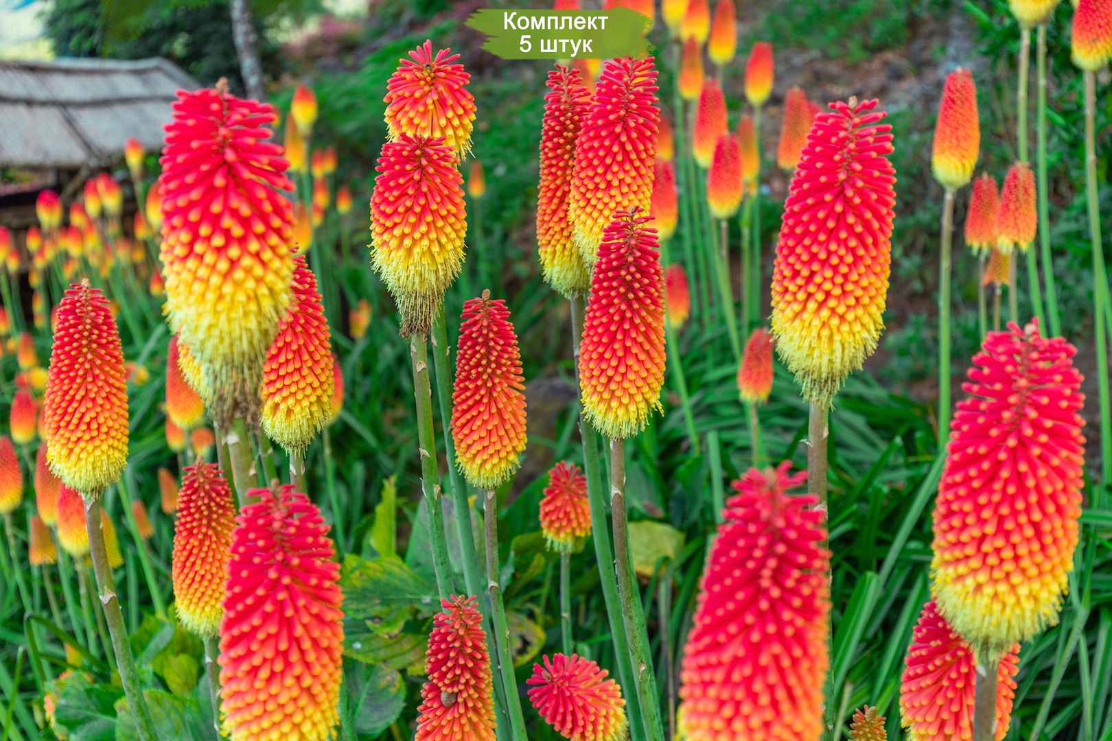 Саженцы книфофии ягодной "Файер Флэйм" станут ярким акцентом в вашем саду, радующим глаз на протяжении всего сезона.