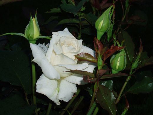 Описание: Роза Бианка (Bianca) представляет собой саженец чайно-гибридного сорта с классическими цветками. В стадии бутона они имеют легкий зеленоватый оттенок, а при полном раскрытии становятся чисто-белыми с плотными лепестками. Иногда цветок раскрывает свою серединку. На побегах цветки располагаются преимущественно по одному, реже по три. Куст прямостоячий, густооблиственный, с крупными темно-зелеными полу-глянцевыми листьями. Шипы крупные, но их немного.