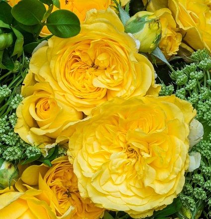 Английская роза Инка (Inka) отличается своими густомахровыми цветками диаметром 6-8 см, которые обладают ностальгическим шармом и насыщенным золотисто-жёлтым оттенком. Эти цветы собраны в соцветия и радуют своим постоянным цветением, создавая яркое золотое сияние на протяжении многих недель. Окраска цветков остаётся неизменной даже под ярким солнечным светом, а самоочищающиеся цветки облегчают уход за растением.